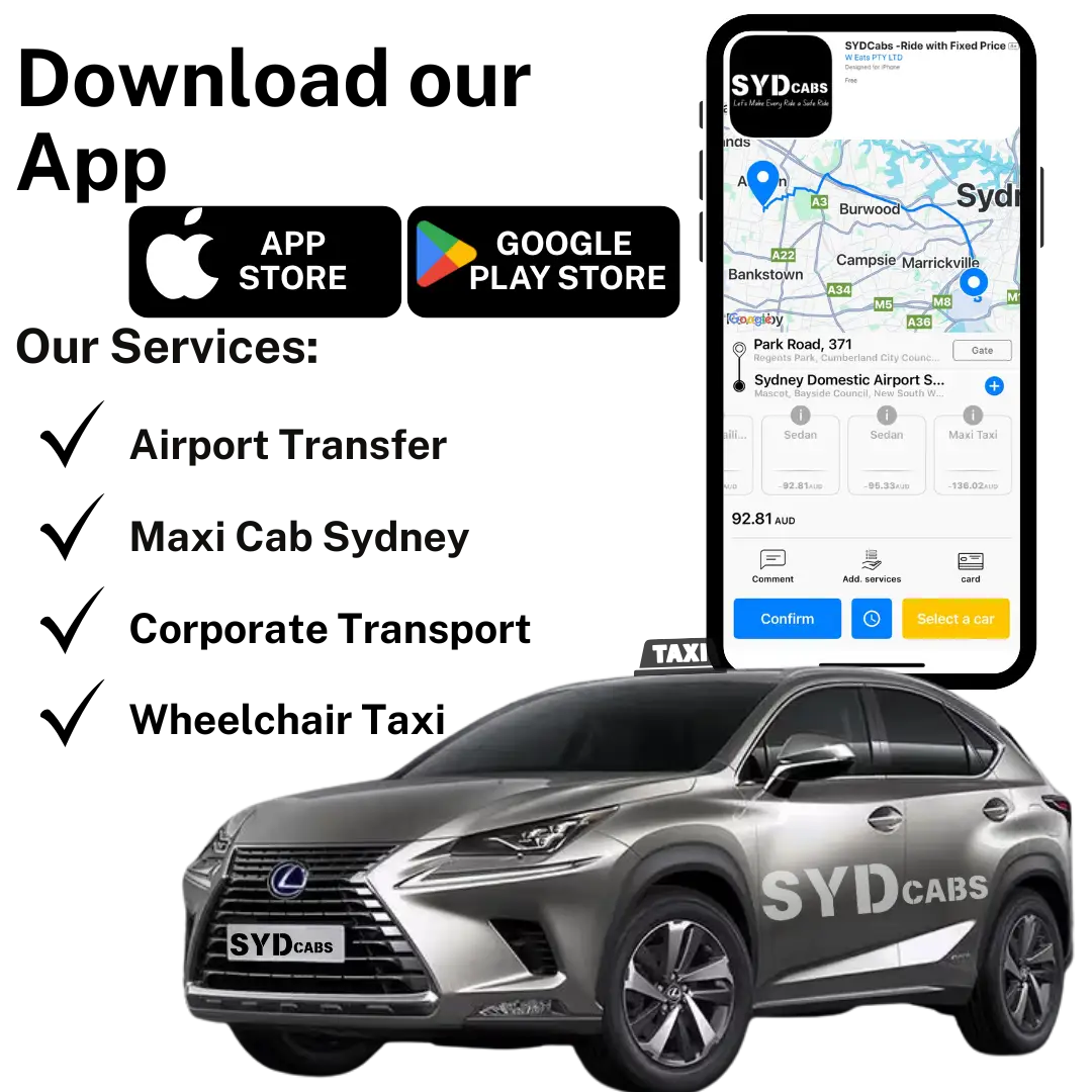 At SYD CABS, we’re here for you 24/7. With just a tap, click, or phone call, you can book Sydney taxi, Airport taxi transfer, Maxi taxi to Melbourne, Maxi taxi Sydney, taxi sydney near me by calling on 1300 926 117 cab booking number.